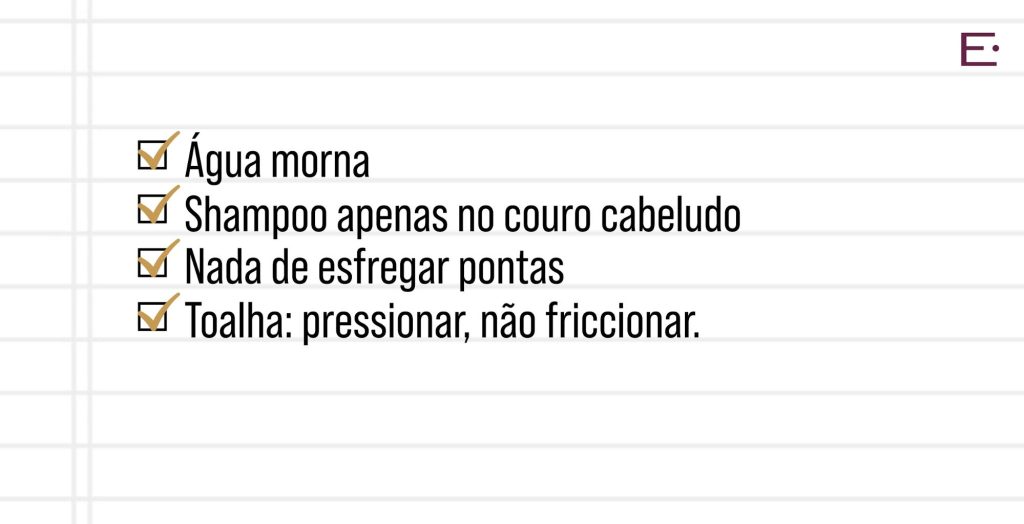 Aqui a ideia é simples: você não precisa fazer mais. Você precisa fazer melhor, na ordem certa. Pense em um ritual que funcione tanto nos dias úmidos quanto nos dias frios, e que também proteja o fio quando o calor entra.