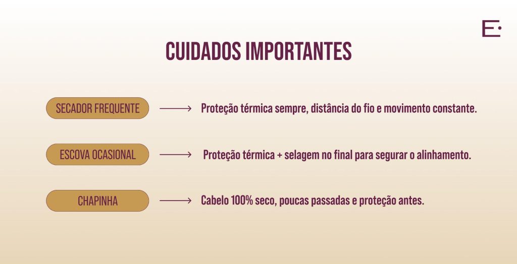 Por isso, no outono, a proteção térmica deixa de ser opcional e vira uma parte inteligente do ritual, para permitir que você finalize e mantenha o resultado com mais segurança, sem sentir que o cabelo paga o preço no dia seguinte.