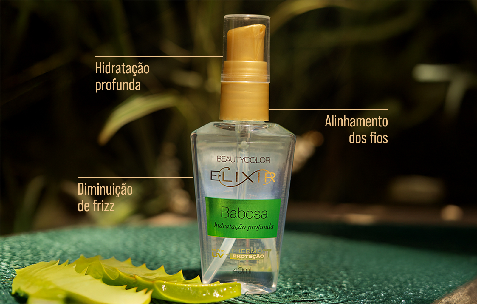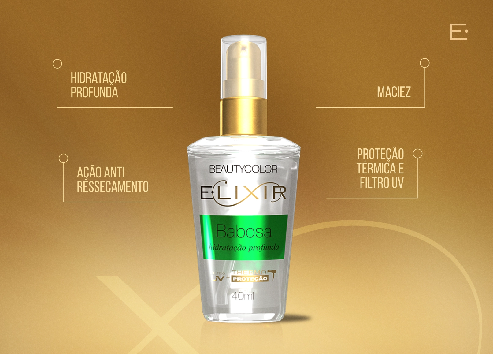 O E.lixir Babosa é o tratamento ideal para cabelos secos e com frizz intenso. Sua fórmula enriquecida com Vitamina E e ativos condicionantes forma uma película protetora que mantém a hidratação, o alinhamento e o controle dos fios, garantindo toque suave e brilho natural.